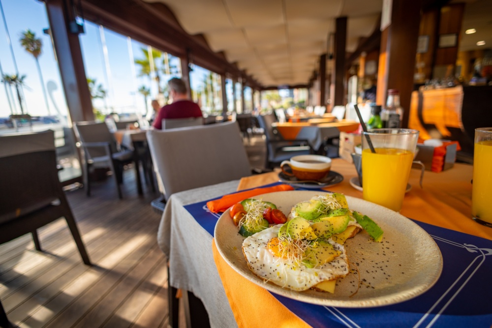 Ponemos a disposición de nuestros clientes servicios de desayuno, almuerzo y cena. Tanto en el salón como en nuestra terraza al aire libre podrás disfrutar de una relajada velada y de una amplia variedad de platos de cocina internacional aptos para todos los gustos.